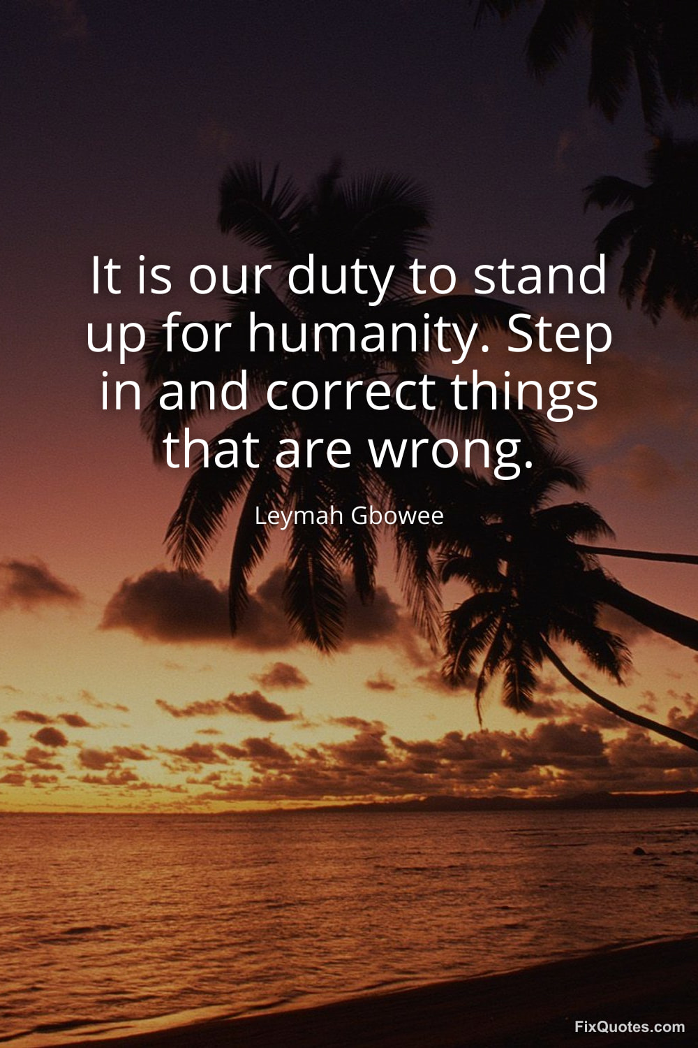 Gbowee, Leymah. "It is our duty to stand up for humanity. Step in and correct things that are wrong." FixQuotes. February 15, 2026. https://fixquotes.com/quotes/it-is-our-duty-to-stand-up-for-humanity-step-in-185441/.