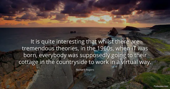 Rogers, Richard. (2026, February 17). It is quite interesting that whilst there are tremendous theories, in the 1960s, when IT was born, everybody was supposedly going to their cottage in the countryside to work in a virtual way. FixQuotes. https://fixquotes.com/quotes/it-is-quite-interesting-that-whilst-there-are-109797/