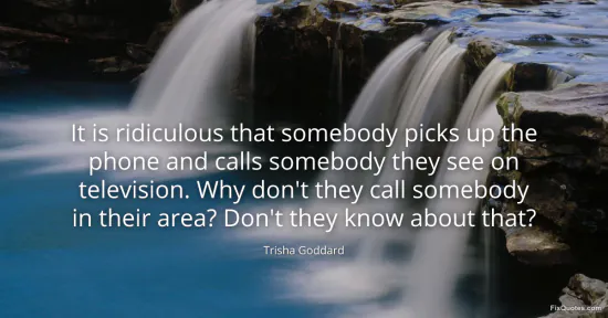 Goddard, Trisha. (2026, January 15). It is ridiculous that somebody picks up the phone and calls somebody they see on television. Why don't they call somebody in their area? Don't they know about that? FixQuotes. https://fixquotes.com/quotes/it-is-ridiculous-that-somebody-picks-up-the-phone-159889/