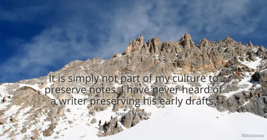Mahfouz, Naguib. (2026, January 15). It is simply not part of my culture to preserve notes. I have never heard of a writer preserving his early drafts. FixQuotes. https://fixquotes.com/quotes/it-is-simply-not-part-of-my-culture-to-preserve-158967/