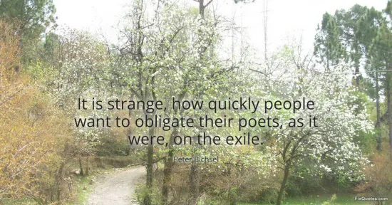 Bichsel, Peter. (2026, January 16). It is strange, how quickly people want to obligate their poets, as it were, on the exile. FixQuotes. https://fixquotes.com/quotes/it-is-strange-how-quickly-people-want-to-obligate-115534/