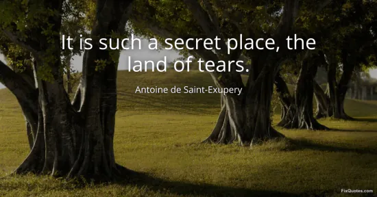 Saint-Exupery, Antoine de. (2026, February 27). It is such a secret place, the land of tears. FixQuotes. https://fixquotes.com/quotes/it-is-such-a-secret-place-the-land-of-tears-29911/