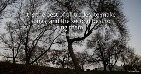 Belloc, Hilaire. (2026, January 17). It is the best of all trades, to make songs, and the second best to sing them. FixQuotes. https://fixquotes.com/quotes/it-is-the-best-of-all-trades-to-make-songs-and-59868/