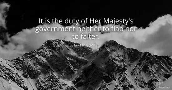 Macmillan, Harold. "It is the duty of Her Majesty's government neither to flap nor to falter." FixQuotes. January 18, 2026. https://fixquotes.com/quotes/it-is-the-duty-of-her-majestys-government-neither-14596/.