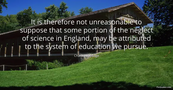Babbage, Charles. (2026, January 18). It is therefore not unreasonable to suppose that some portion of the neglect of science in England, may be attributed to the system of education we pursue. FixQuotes. https://fixquotes.com/quotes/it-is-therefore-not-unreasonable-to-suppose-that-20111/