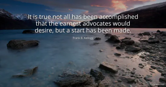 Kellogg, Frank B. "It is true not all has been accomplished that the earnest advocates would desire, but a start has been made." FixQuotes. January 17, 2026. https://fixquotes.com/quotes/it-is-true-not-all-has-been-accomplished-that-the-59179/.