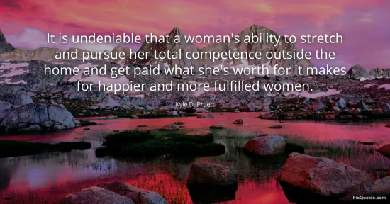 Pruett, Kyle D. "It is undeniable that a woman's ability to stretch and pursue her total competence outside the home and get paid what she's worth for it makes for happier and more fulfilled women." FixQuotes. January 16, 2026. https://fixquotes.com/quotes/it-is-undeniable-that-a-womans-ability-to-stretch-119845/.