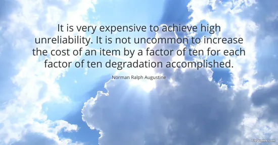 Augustine, Norman Ralph. "It is very expensive to achieve high unreliability. It is not uncommon to increase the cost of an item by a factor of ten for each factor of ten degradation accomplished." FixQuotes. January 16, 2026. https://fixquotes.com/quotes/it-is-very-expensive-to-achieve-high-89410/.
