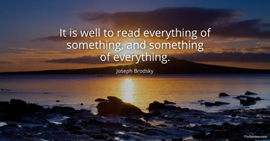 Brodsky, Joseph. (2026, January 16). It is well to read everything of something, and something of everything. FixQuotes. https://fixquotes.com/quotes/it-is-well-to-read-everything-of-something-and-90946/