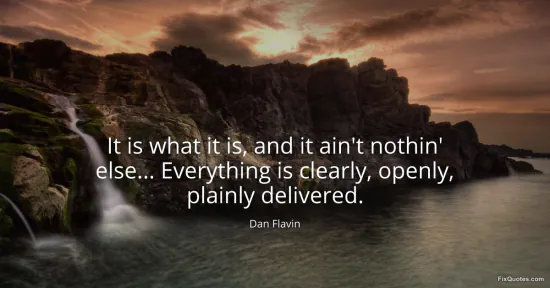 Flavin, Dan. "It is what it is, and it ain't nothin' else... Everything is clearly, openly, plainly delivered." FixQuotes. January 15, 2026. https://fixquotes.com/quotes/it-is-what-it-is-and-it-aint-nothin-else-158037/.