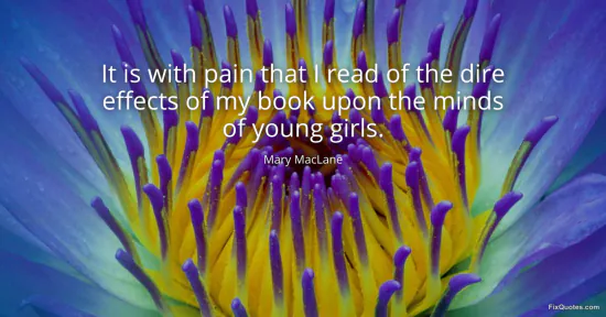 MacLane, Mary. (2026, January 16). It is with pain that I read of the dire effects of my book upon the minds of young girls. FixQuotes. https://fixquotes.com/quotes/it-is-with-pain-that-i-read-of-the-dire-effects-88654/
