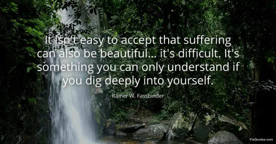 Fassbinder, Rainer W. "It isn't easy to accept that suffering can also be beautiful... it's difficult. It's something you can only understand if you dig deeply into yourself." FixQuotes. January 15, 2026. https://fixquotes.com/quotes/it-isnt-easy-to-accept-that-suffering-can-also-be-155864/.