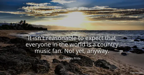 Pride, Charley. "It isn't reasonable to expect that everyone in the world is a country music fan. Not yet, anyway." FixQuotes. January 17, 2026. https://fixquotes.com/quotes/it-isnt-reasonable-to-expect-that-everyone-in-the-46915/.