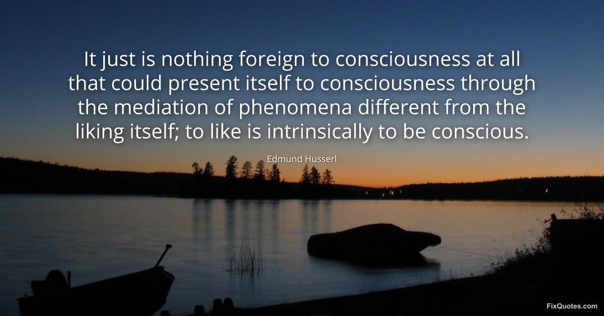 Husserl, Edmund. "It just is nothing foreign to consciousness at all that could present itself to consciousness through the mediation of phenomena different from the liking itself; to like is intrinsically to be conscious." FixQuotes. January 16, 2026. https://fixquotes.com/quotes/it-just-is-nothing-foreign-to-consciousness-at-104403/.