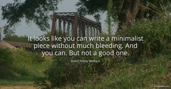 Wallace, David Foster. (2026, January 15). It looks like you can write a minimalist piece without much bleeding. And you can. But not a good one. FixQuotes. https://fixquotes.com/quotes/it-looks-like-you-can-write-a-minimalist-piece-50908/