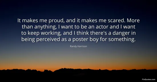Harrison, Randy. (2026, January 16). It makes me proud, and it makes me scared. More than anything, I want to be an actor and I want to keep working, and I think there's a danger in being perceived as a poster boy for something. FixQuotes. https://fixquotes.com/quotes/it-makes-me-proud-and-it-makes-me-scared-more-116866/