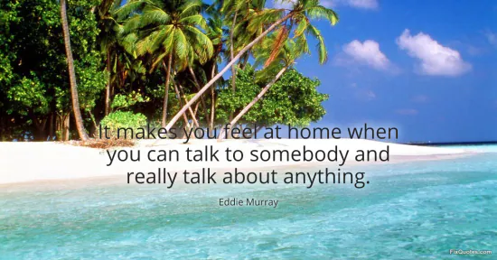 Murray, Eddie. "It makes you feel at home when you can talk to somebody and really talk about anything." FixQuotes. January 16, 2026. https://fixquotes.com/quotes/it-makes-you-feel-at-home-when-you-can-talk-to-136228/.