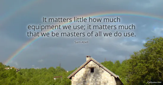 Abell, Sam. "It matters little how much equipment we use; it matters much that we be masters of all we do use." FixQuotes. January 15, 2026. https://fixquotes.com/quotes/it-matters-little-how-much-equipment-we-use-it-129216/.