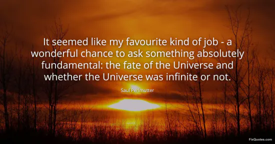 Perlmutter, Saul. (2026, January 15). It seemed like my favourite kind of job - a wonderful chance to ask something absolutely fundamental: the fate of the Universe and whether the Universe was infinite or not. FixQuotes. https://fixquotes.com/quotes/it-seemed-like-my-favourite-kind-of-job-a-150015/