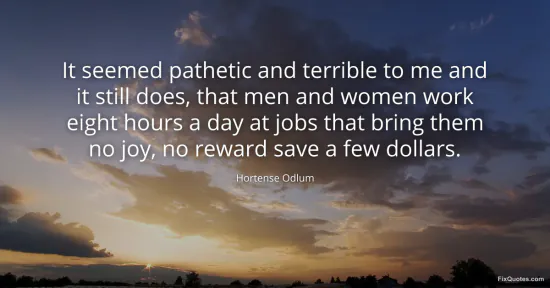 Odlum, Hortense. (2026, January 16). It seemed pathetic and terrible to me and it still does, that men and women work eight hours a day at jobs that bring them no joy, no reward save a few dollars. FixQuotes. https://fixquotes.com/quotes/it-seemed-pathetic-and-terrible-to-me-and-it-125087/