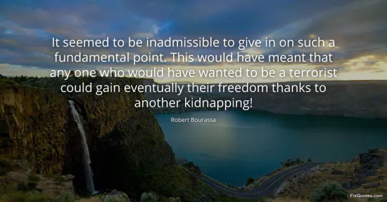 Bourassa, Robert. (2026, February 17). It seemed to be inadmissible to give in on such a fundamental point. This would have meant that any one who would have wanted to be a terrorist could gain eventually their freedom thanks to another kidnapping! FixQuotes. https://fixquotes.com/quotes/it-seemed-to-be-inadmissible-to-give-in-on-such-a-109809/