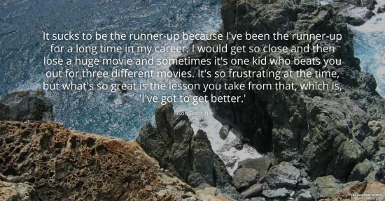 Dohring, Jason. "It sucks to be the runner-up because I've been the runner-up for a long time in my career. I would get so close and then lose a huge movie and sometimes it's one kid who beats you out for three different movies. It's so frustrating at the time, but what's so great is the lesson you take from that, which is, 'I've got to get better.'." FixQuotes. January 17, 2026. https://fixquotes.com/quotes/it-sucks-to-be-the-runner-up-because-ive-been-the-75975/.
