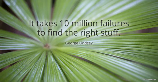 Lindsey, George. (2026, January 16). It takes 10 million failures to find the right stuff. FixQuotes. https://fixquotes.com/quotes/it-takes-10-million-failures-to-find-the-right-136686/