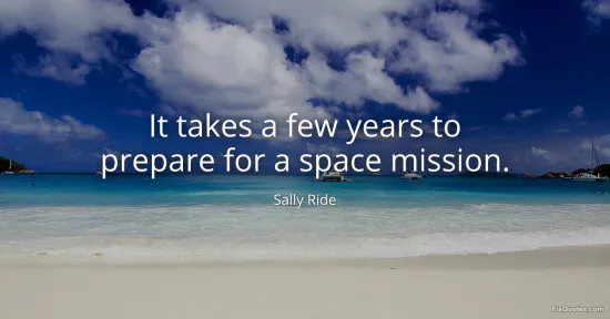 Coming from Sally Ride, the first American woman in space, the line points to the hidden timescale behind the spectacle of launch day. Ride entered NASA in 1978 and did not fly until 1983; even after selection, astronauts spend years learning systems, flying T-38 jets, practicing emergency procedures, and running endless simulations with mission control. Only after that foundation are crews assigned and trained for a specific mission payload, from robotics to experiments to spacewalk choreography. The pace feels slow because it must be: spaceflight is unforgiving, and the margin for error is razor thin.