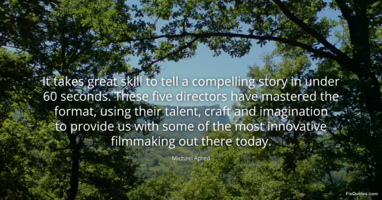 Apted, Michael. "It takes great skill to tell a compelling story in under 60 seconds. These five directors have mastered the format, using their talent, craft and imagination to provide us with some of the most innovative filmmaking out there today." FixQuotes. January 15, 2026. https://fixquotes.com/quotes/it-takes-great-skill-to-tell-a-compelling-story-155588/.