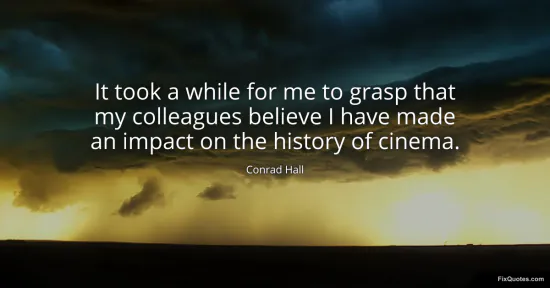Hall, Conrad. "It took a while for me to grasp that my colleagues believe I have made an impact on the history of cinema." FixQuotes. January 17, 2026. https://fixquotes.com/quotes/it-took-a-while-for-me-to-grasp-that-my-64765/.