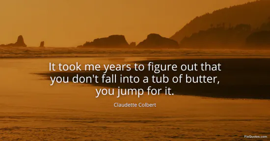 Colbert, Claudette. (2026, January 16). It took me years to figure out that you don't fall into a tub of butter, you jump for it. FixQuotes. https://fixquotes.com/quotes/it-took-me-years-to-figure-out-that-you-dont-fall-110090/