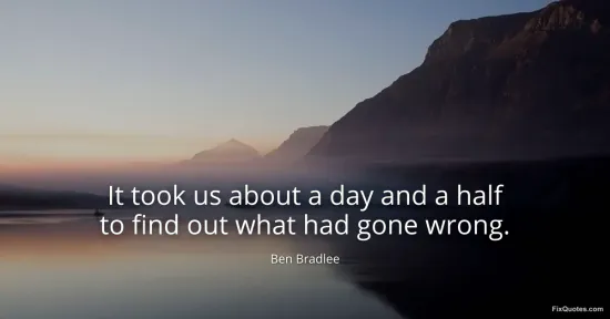 "It took us about a day and a half to find out what had gone wrong." FixQuotes, 16 Jan. 2026, https://fixquotes.com/quotes/it-took-us-about-a-day-and-a-half-to-find-out-138761/. Accessed 18 Feb. 2026.