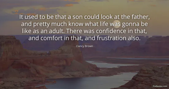 Brown, Clancy. "It used to be that a son could look at the father, and pretty much know what life was gonna be like as an adult. There was confidence in that, and comfort in that, and frustration also." FixQuotes. January 15, 2026. https://fixquotes.com/quotes/it-used-to-be-that-a-son-could-look-at-the-father-158005/.