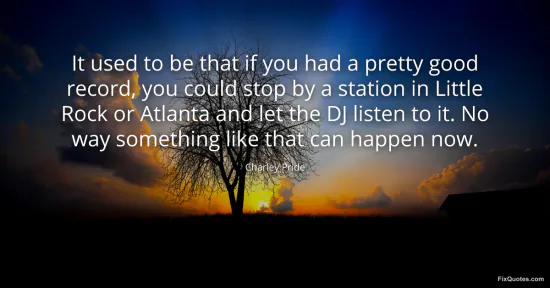 Pride, Charley. "It used to be that if you had a pretty good record, you could stop by a station in Little Rock or Atlanta and let the DJ listen to it. No way something like that can happen now." FixQuotes. January 17, 2026. https://fixquotes.com/quotes/it-used-to-be-that-if-you-had-a-pretty-good-46649/.