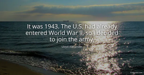 Alexander, Lloyd. (2026, January 16). It was 1943. The U.S. had already entered World War II, so I decided to join the army. FixQuotes. https://fixquotes.com/quotes/it-was-1943-the-us-had-already-entered-world-war-119210/