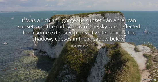 Parkman, Francis. (2026, January 15). It was a rich and gorgeous sunset - an American sunset; and the ruddy glow of the sky was reflected from some extensive pools of water among the shadowy copses in the meadow below. FixQuotes. https://fixquotes.com/quotes/it-was-a-rich-and-gorgeous-sunset-an-american-52818/