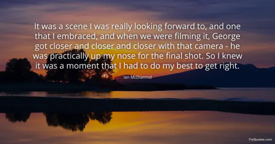 McDiarmid, Ian. "It was a scene I was really looking forward to, and one that I embraced, and when we were filming it, George got closer and closer and closer with that camera - he was practically up my nose for the final shot. So I knew it was a moment that I had to do my best to get right." FixQuotes. January 16, 2026. https://fixquotes.com/quotes/it-was-a-scene-i-was-really-looking-forward-to-90920/.