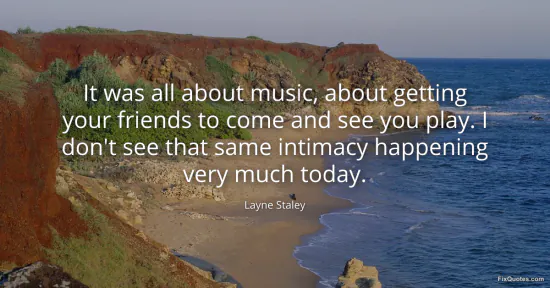 Staley, Layne. (2026, January 16). It was all about music, about getting your friends to come and see you play. I don't see that same intimacy happening very much today. FixQuotes. https://fixquotes.com/quotes/it-was-all-about-music-about-getting-your-friends-87266/