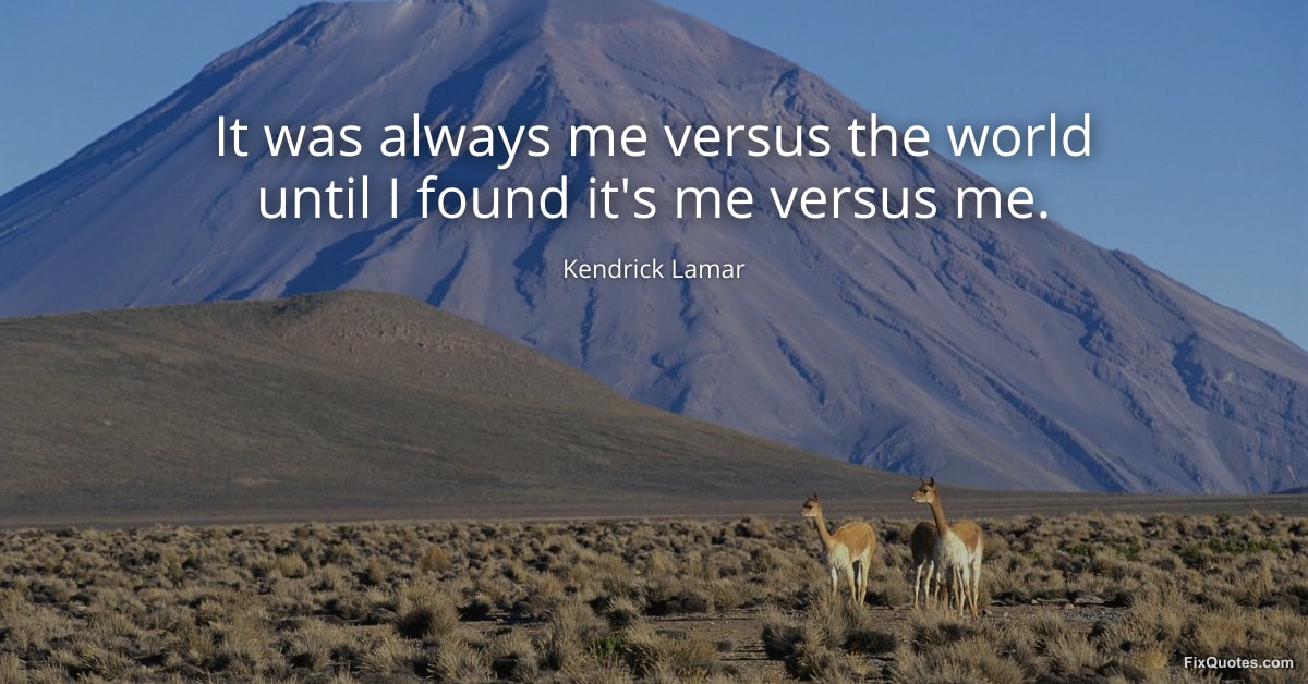 Lamar, Kendrick. (2026, February 1). It was always me versus the world until I found it's me versus me. FixQuotes. https://fixquotes.com/quotes/it-was-always-me-versus-the-world-until-i-found-184858/