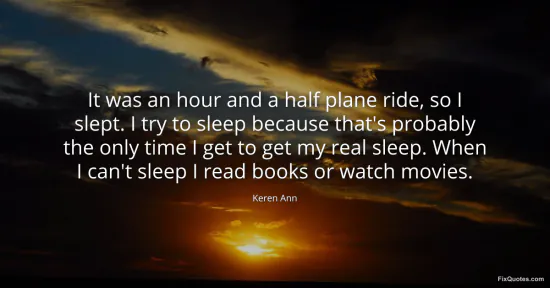 Ann, Keren. (2026, January 16). It was an hour and a half plane ride, so I slept. I try to sleep because that's probably the only time I get to get my real sleep. When I can't sleep I read books or watch movies. FixQuotes. https://fixquotes.com/quotes/it-was-an-hour-and-a-half-plane-ride-so-i-slept-i-111848/