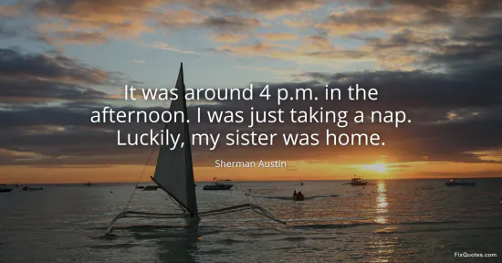 Austin, Sherman. (2026, January 16). It was around 4 p.m. in the afternoon. I was just taking a nap. Luckily, my sister was home. FixQuotes. https://fixquotes.com/quotes/it-was-around-4-pm-in-the-afternoon-i-was-just-124761/