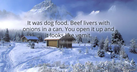 Sizemore, Tom. "It was dog food. Beef livers with onions in a can. You open it up and it looks like vomit." FixQuotes. January 15, 2026. https://fixquotes.com/quotes/it-was-dog-food-beef-livers-with-onions-in-a-can-156926/.