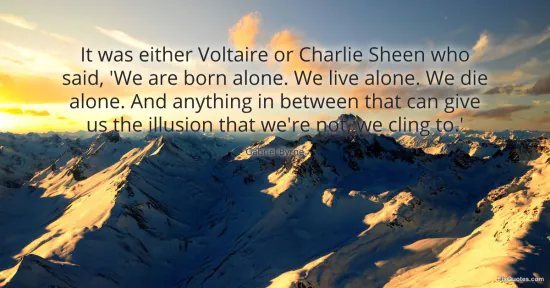 Byrne, Gabriel. "It was either Voltaire or Charlie Sheen who said, 'We are born alone. We live alone. We die alone. And anything in between that can give us the illusion that we're not, we cling to.'." FixQuotes. January 15, 2026. https://fixquotes.com/quotes/it-was-either-voltaire-or-charlie-sheen-who-said-149342/.