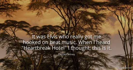 McCartney, Paul. (2026, January 17). It was Elvis who really got me hooked on beat music. When I heard "Heartbreak Hotel" I thought, this is it. FixQuotes. https://fixquotes.com/quotes/it-was-elvis-who-really-got-me-hooked-on-beat-28521/