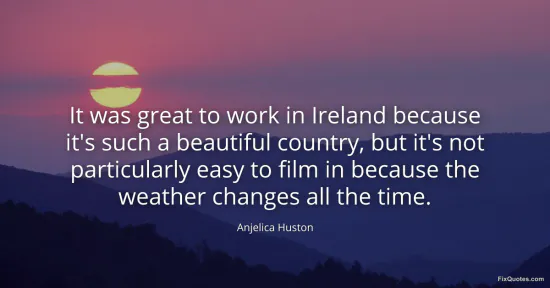 Huston, Anjelica. (2026, January 17). It was great to work in Ireland because it's such a beautiful country, but it's not particularly easy to film in because the weather changes all the time. FixQuotes. https://fixquotes.com/quotes/it-was-great-to-work-in-ireland-because-its-such-44260/