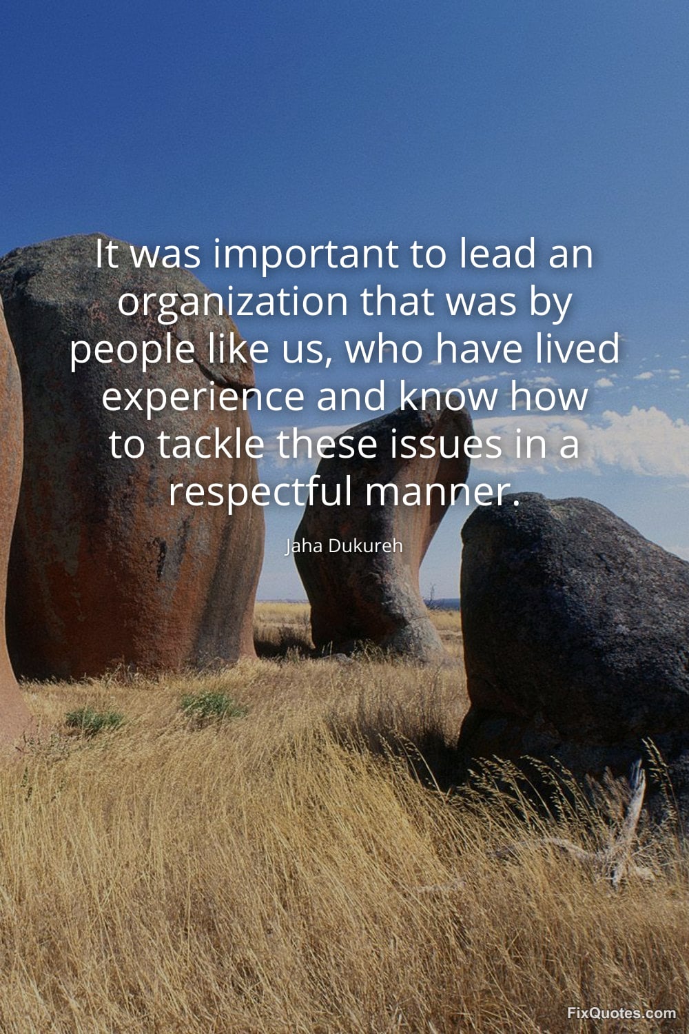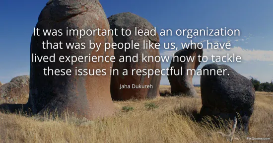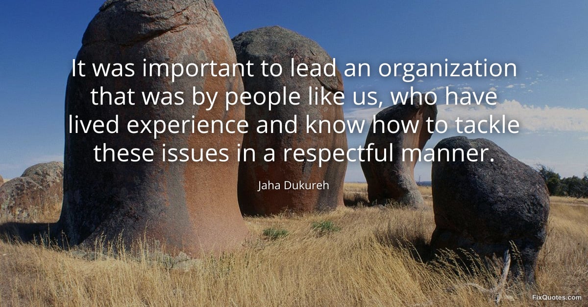 Dukureh, Jaha. (2026, February 17). It was important to lead an organization that was by people like us, who have lived experience and know how to tackle these issues in a respectful manner. FixQuotes. https://fixquotes.com/quotes/it-was-important-to-lead-an-organization-that-was-185611/