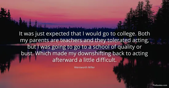 Miller, Wentworth. "It was just expected that I would go to college. Both my parents are teachers and they tolerated acting, but I was going to go to a school of quality or bust. Which made my downshifting back to acting afterward a little difficult." FixQuotes. January 18, 2026. https://fixquotes.com/quotes/it-was-just-expected-that-i-would-go-to-college-17515/.
