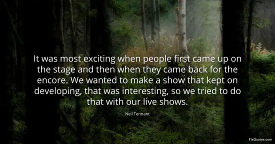 Tennant, Neil. (2026, January 16). It was most exciting when people first came up on the stage and then when they came back for the encore. We wanted to make a show that kept on developing, that was interesting, so we tried to do that with our live shows. FixQuotes. https://fixquotes.com/quotes/it-was-most-exciting-when-people-first-came-up-on-88760/