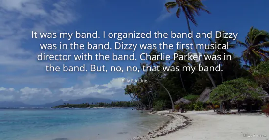 Eckstine, Billy. "It was my band. I organized the band and Dizzy was in the band. Dizzy was the first musical director with the band. Charlie Parker was in the band. But, no, no, that was my band." FixQuotes. January 17, 2026. https://fixquotes.com/quotes/it-was-my-band-i-organized-the-band-and-dizzy-was-41215/.