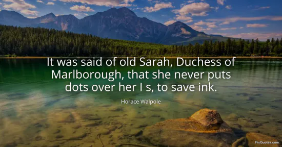 Walpole, Horace. (2026, January 17). It was said of old Sarah, Duchess of Marlborough, that she never puts dots over her I s, to save ink. FixQuotes. https://fixquotes.com/quotes/it-was-said-of-old-sarah-duchess-of-marlborough-48880/